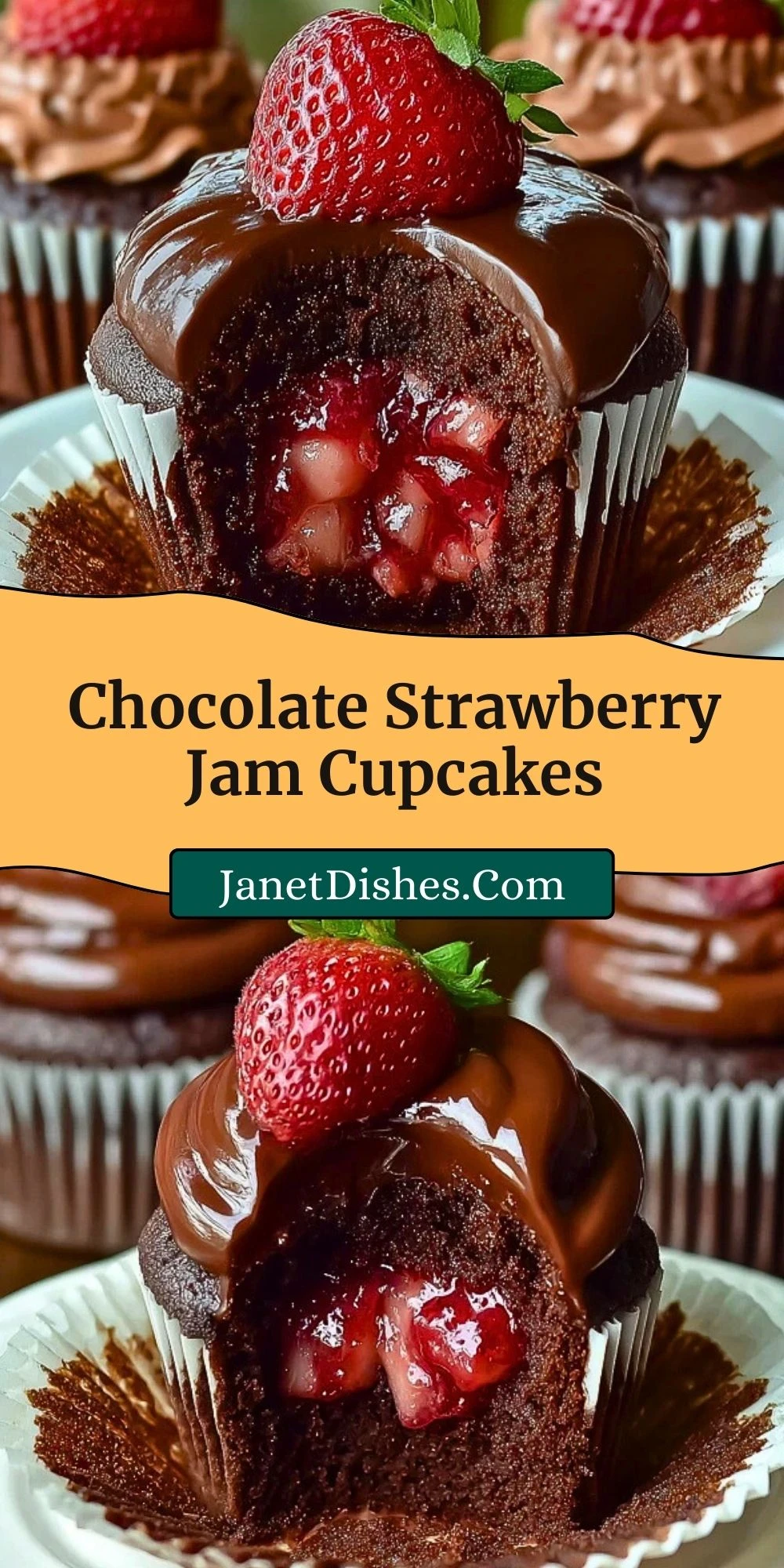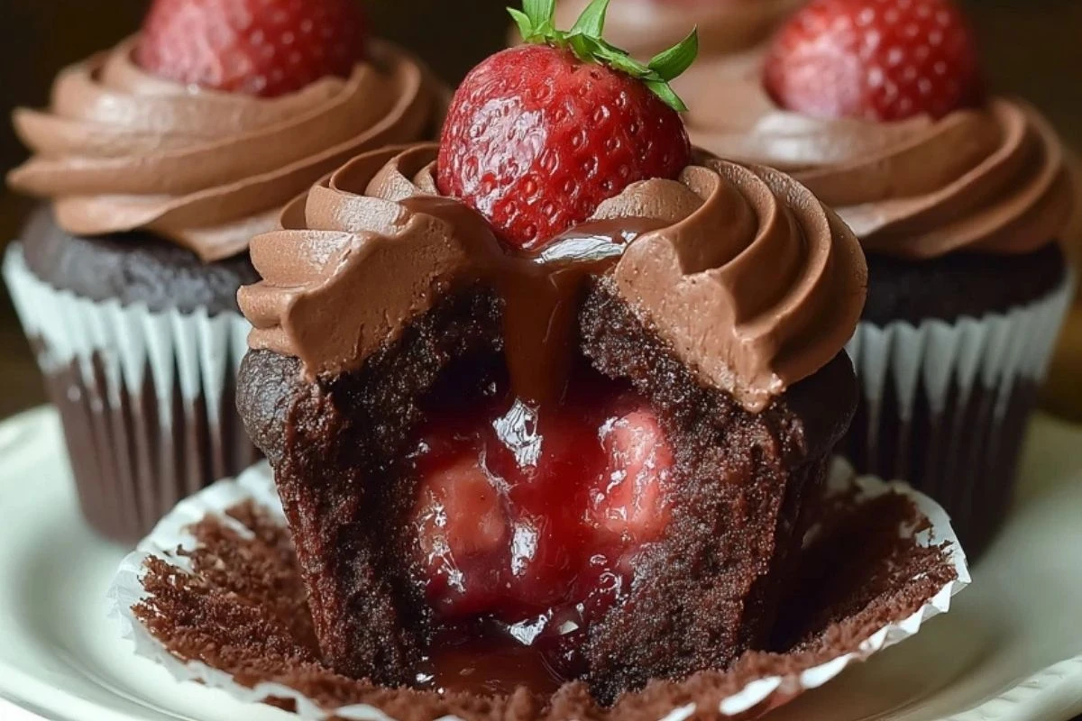 Chocolate Strawberry Jam Cupcakes are soft rich chocolate cupcakes filled with sweet strawberry jam and topped with creamy chocolate frosting. This easy homemade dessert blends deep cocoa flavor with fruity strawberry sweetness creating a bakery style treat perfect for parties holidays or everyday baking.