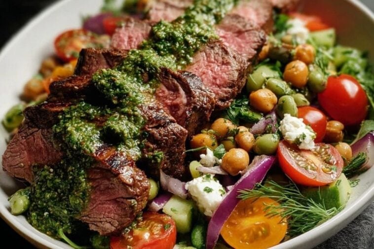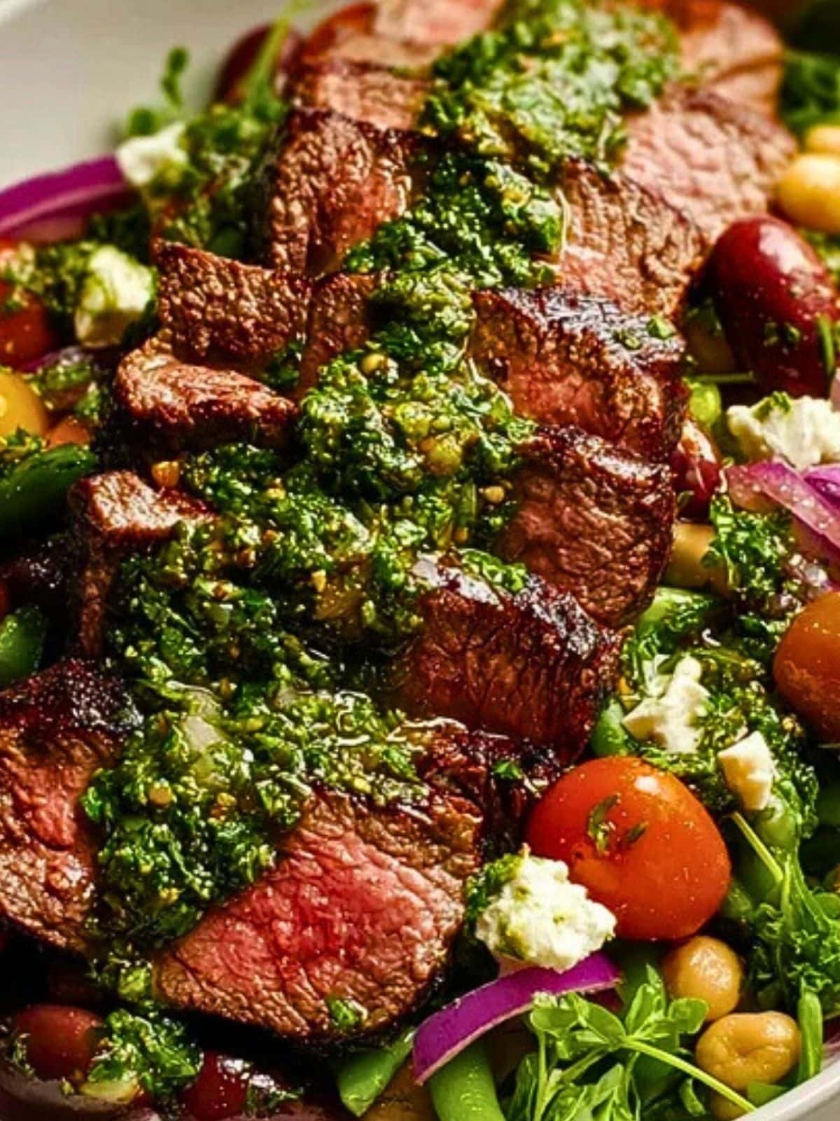 If you’re craving something bold, juicy, and vibrant in one satisfying meal, this Steak Chimichurri & Dense Bean Salad delivers in every bite. Picture perfectly seared steak, sliced and dripping with herby chimichurri, resting atop a hearty, garlicky bean salad that’s filling enough to stand as a meal on its own. It’s a recipe built for warm evenings, late lunches, and impressive weeknight dinners.