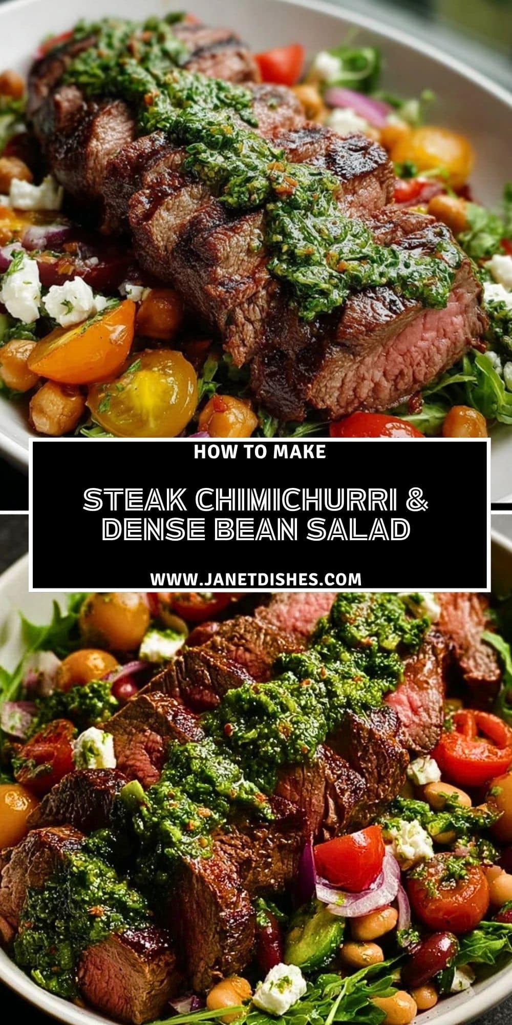 Layer the bean salad on a platter or plate. Top with sliced steak and spoon chimichurri generously over the top. Serve with extra chimichurri on the side.