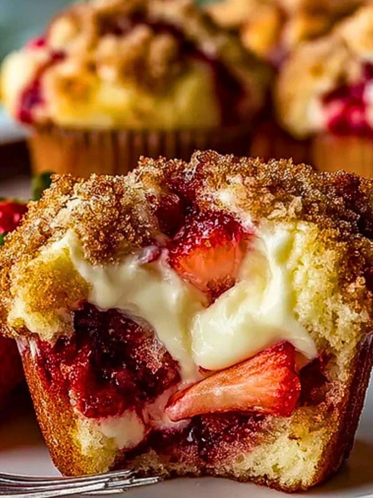These muffins are soft, moist, and full of real strawberry flavor. They bake up with golden tops and little creamy pockets throughout, which makes them feel more special than a classic fruit muffin. The recipe is simple to follow, uses familiar ingredients, and gives you a batch that feels fresh and homemade without a lot of effort.