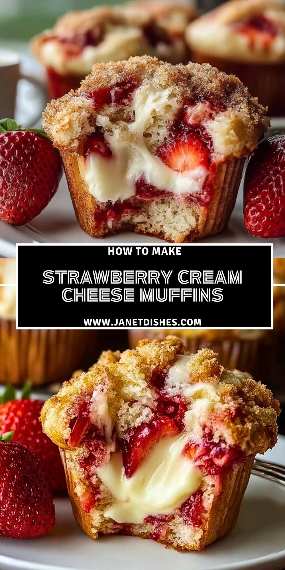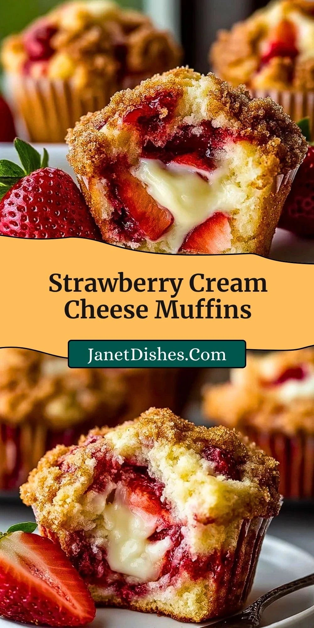 If you enjoy fruity bakes and cozy treats like these Strawberry Cream Cheese Muffins, you might also love a few other favorites from Janet Dishes. Try Strawberry Shortcake Cheesecake Rolls for another strawberry-filled dessert with a creamy twist. One-Bowl Banana Chocolate Muffins are perfect when you want an easy muffin recipe with rich flavor. Irresistible Blueberry Lime Cheesecake Cupcakes bring the same creamy, fruity appeal in cupcake form. Churro Cheesecake Donut Cookies are a fun choice when you want something playful and sweet. And if you are in the mood for another soft, bakery-style bake, Carrot Pound Cake with Vanilla Glaze is always a cozy option.