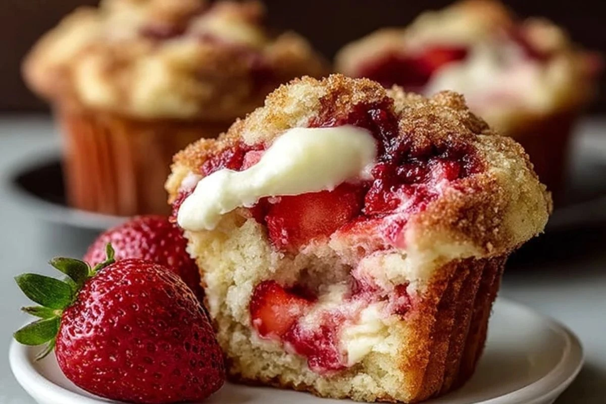 These muffins are soft, moist, and full of real strawberry flavor. They bake up with golden tops and little creamy pockets throughout, which makes them feel more special than a classic fruit muffin. The recipe is simple to follow, uses familiar ingredients, and gives you a batch that feels fresh and homemade without a lot of effort.