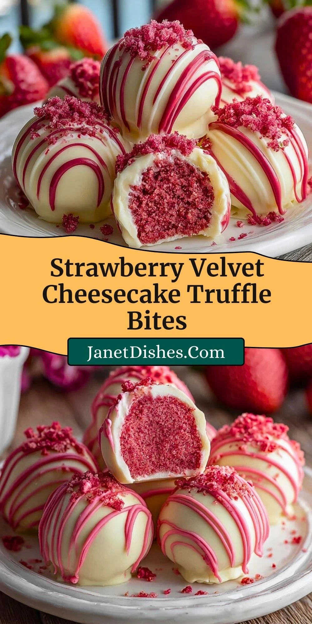 These Strawberry Velvet Cheesecake Truffle Bites are creamy no-bake cheesecake balls coated in white chocolate with a burst of real strawberry flavor. Perfect for parties, dessert platters, or edible gifts, these bite-sized treats are rich, fruity, and irresistibly smooth.