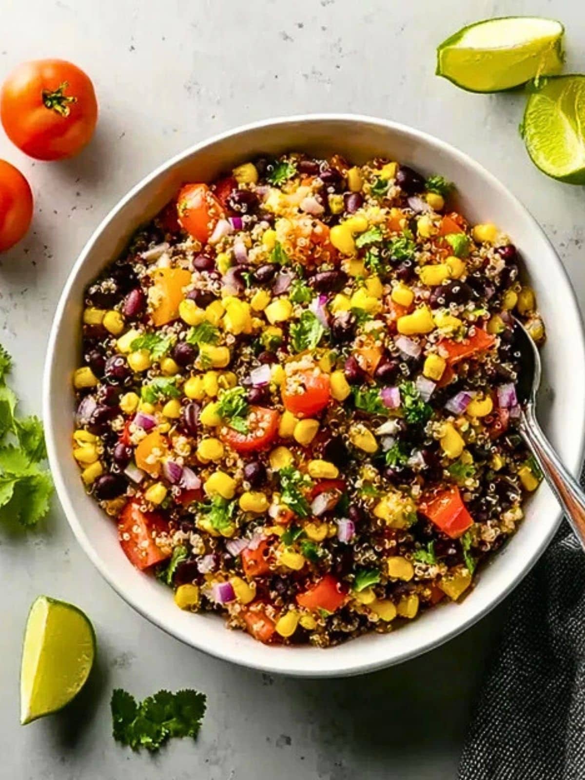 This Sweet Corn and Black Bean Quinoa Salad is a protein-packed vegetarian salad made with fluffy quinoa, sweet corn, creamy black beans, and a zesty lime dressing. Perfect for meal prep, cookouts, or wholesome lunches. Naturally gluten-free and full of fiber.