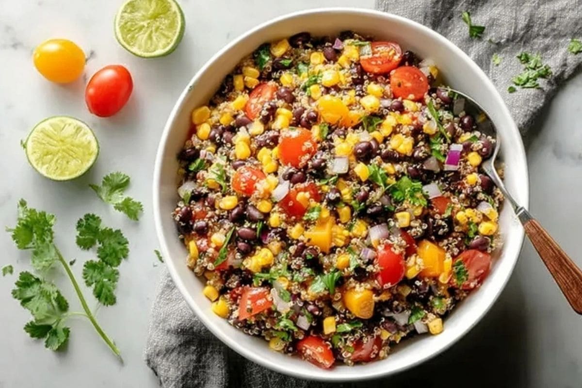 This Sweet Corn and Black Bean Quinoa Salad is a protein-packed vegetarian salad made with fluffy quinoa, sweet corn, creamy black beans, and a zesty lime dressing. Perfect for meal prep, cookouts, or wholesome lunches. Naturally gluten-free and full of fiber.