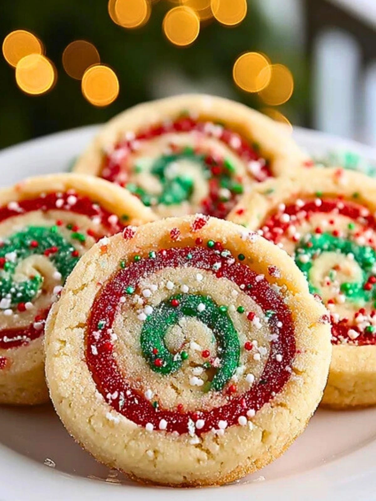 These cookies are best served fresh from the oven once they’ve cooled slightly, but they also store beautifully. Their vibrant swirl and sugar-crusted edge make them ideal for holiday cookie trays, gifting tins, or even as edible place cards on the Christmas table.