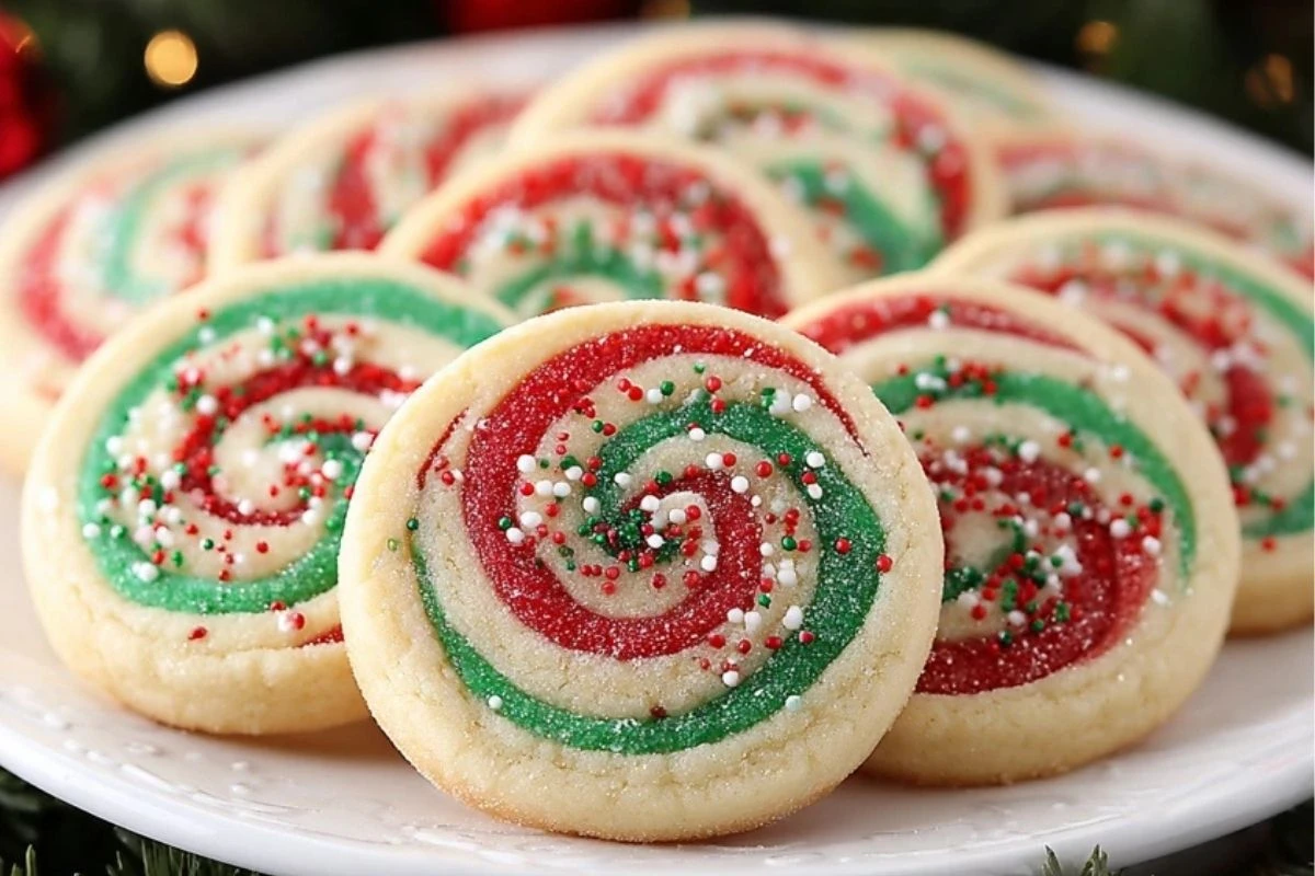 Swirled Christmas Cookies are festive slice-and-bake holiday treats featuring vibrant red and green pinwheels, buttery vanilla flavor, and a sparkly sugar edge. Perfect for cookie trays, gifts, and holiday dessert boards.