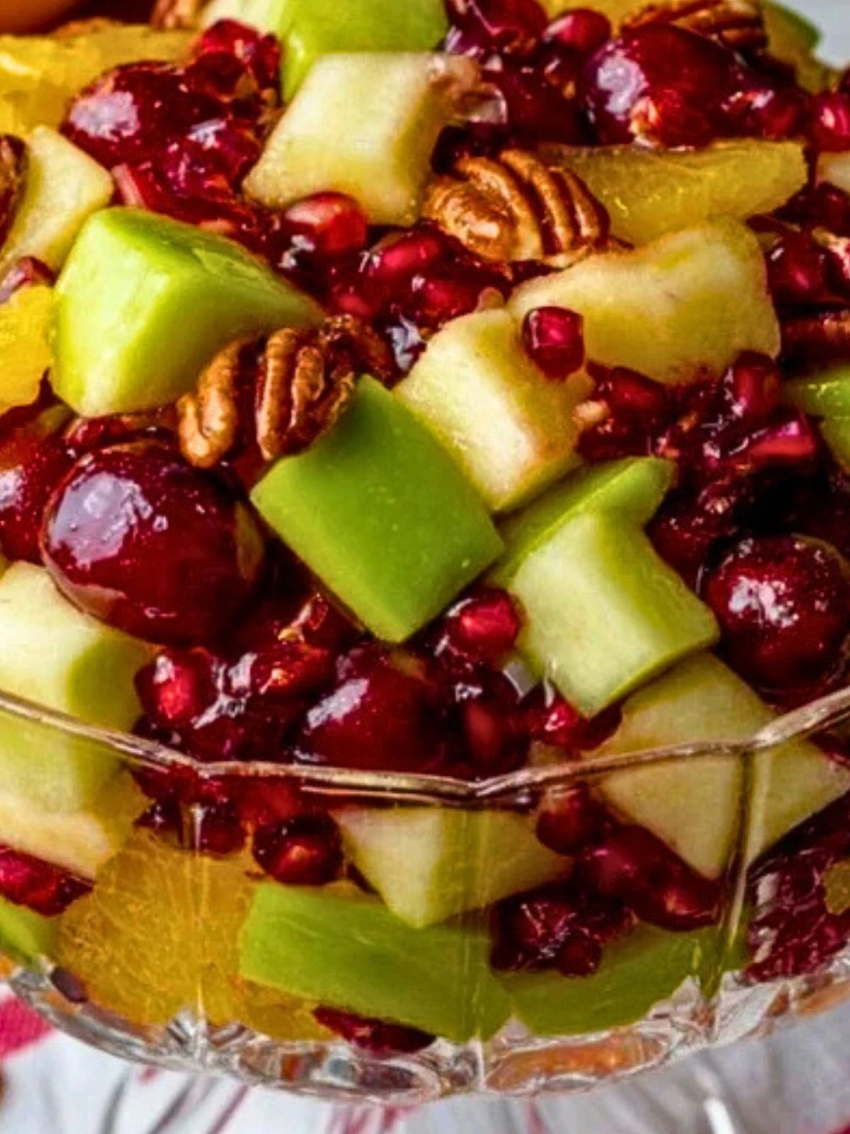 The best part? It’s incredibly easy to make and endlessly customizable. Think juicy oranges, tart cranberries, crisp apples, and pops of pomegranate arils, all gently tossed in a honey-citrus dressing. Add in optional nuts or a touch of mint, and you’ve got a dish that’s as pretty as it is delicious.