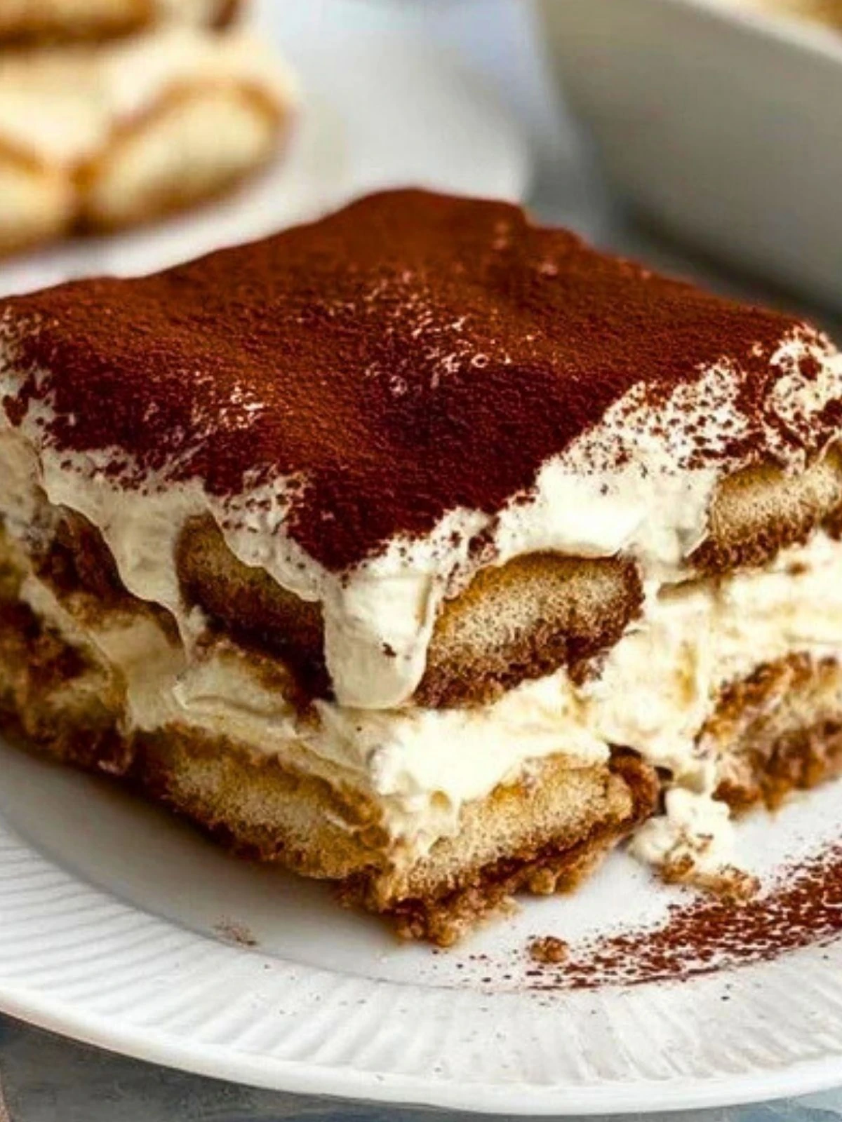 Cover and refrigerate your tiramisu for at least 6 hours or overnight. Just before serving, dust generously with cocoa powder using a fine mesh sieve.