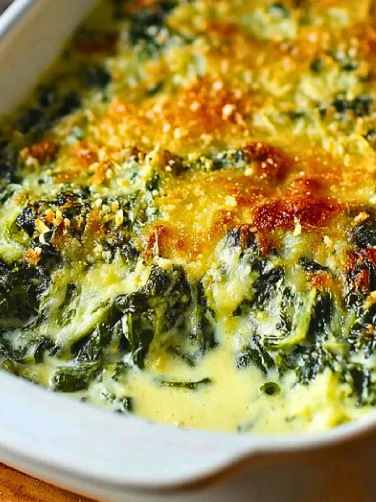 This spinach casserole is everything comfort food should be: simple, satisfying, and just a little nostalgic. It’s easy to put together with basic pantry ingredients and offers a great way to sneak more greens into a meal without sacrificing flavor. The baked topping adds a golden, crunchy contrast to the soft interior, giving you the best of both worlds in one bite.