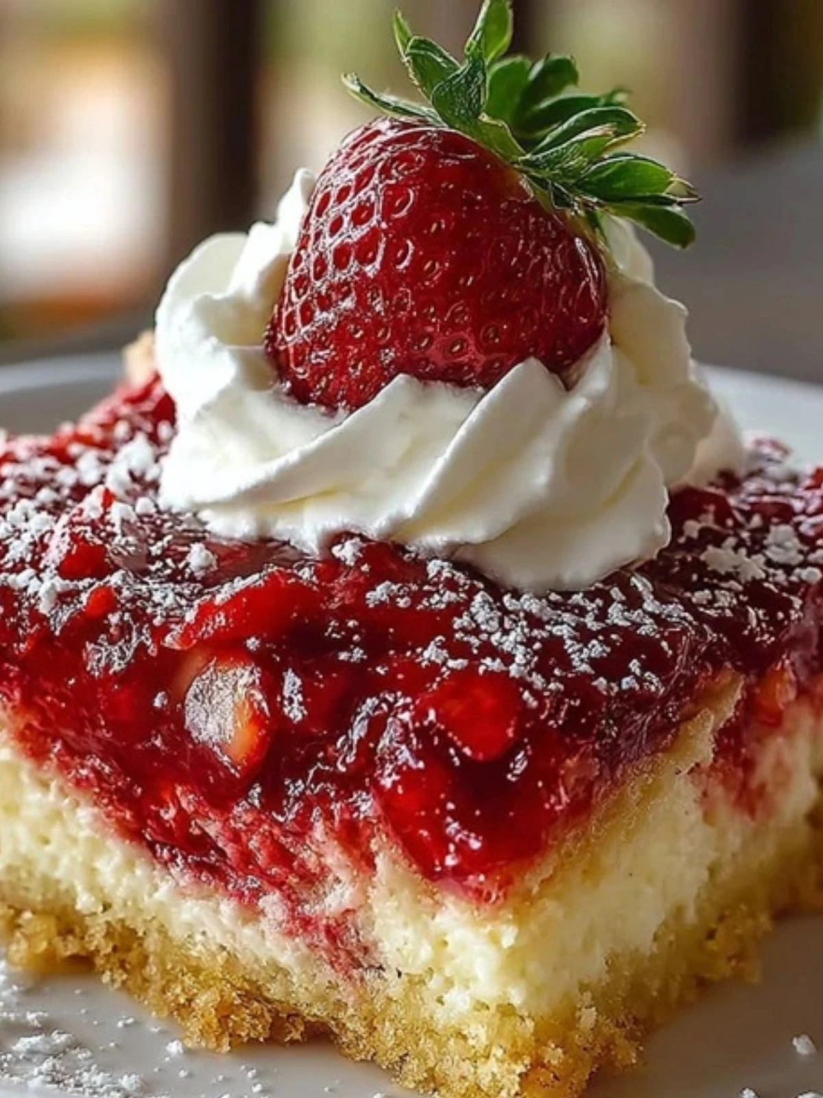 Yes, you absolutely can use fresh strawberries, but you’ll want to turn them into a quick compote first. Canned strawberry pie filling offers the ideal texture and sweetness, but if you prefer fresh berries, cook them down with some sugar and cornstarch until they’re thick and jammy. That way, your cake won’t come out too watery and the flavor will stay concentrated.