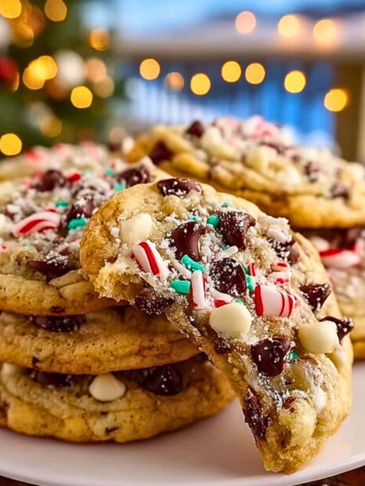 This cookie recipe blends classic chocolate chip comfort with a wintery twist. Think buttery dough laced with melty chocolate chunks and a pinch of cinnamon, dressed up in Christmas colors. Whether you’re gifting a batch, serving them at a cookie swap, or sneaking one with hot cocoa after decorating the tree, they bring coziness and delight to the season.